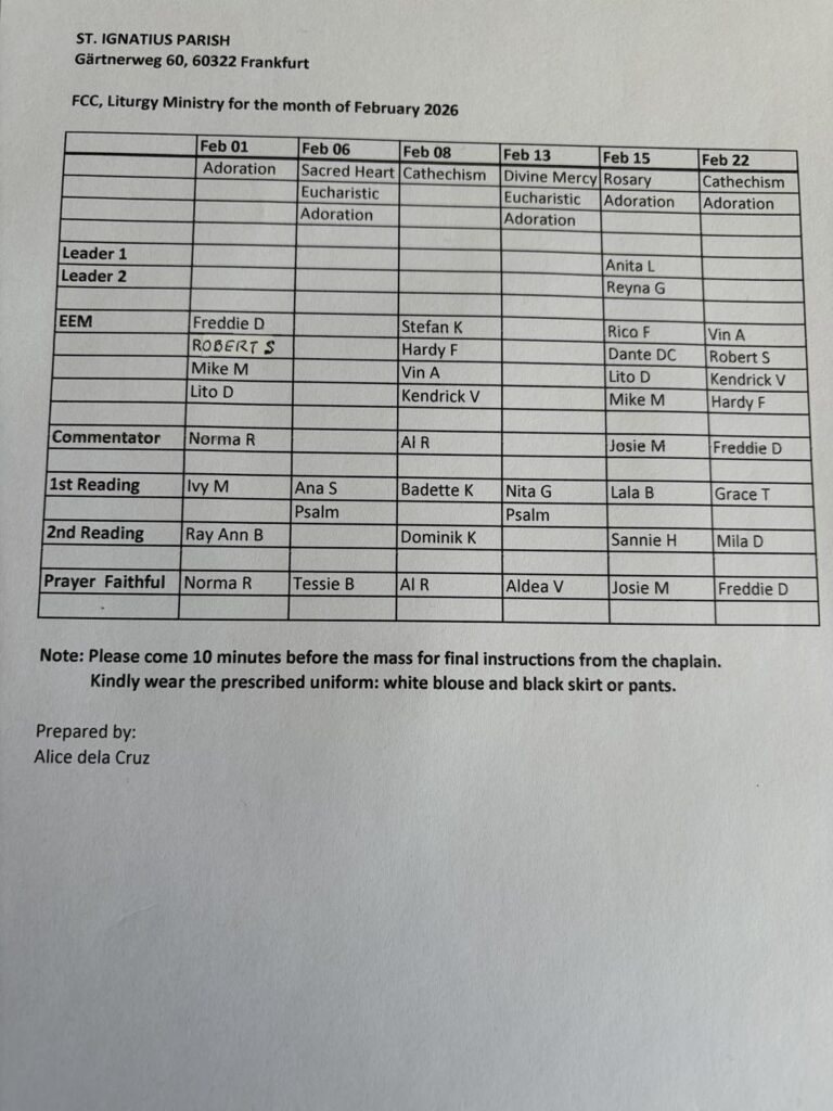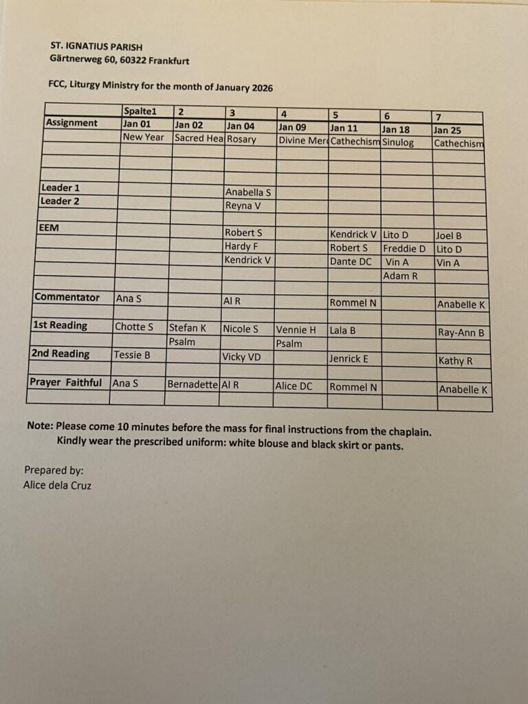 Frankfurt Liturgy Assignments